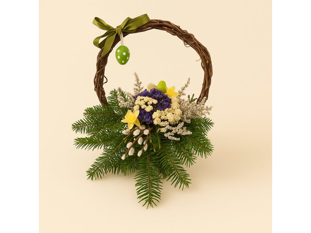 Ke dřevěnému prkénku je připevněno drátové ucho obalené větvičkami vrby. Chvojová placička je velikonočně dozdobena, kytkou ze sušiny (statice, tatarika, slaměnky), mašlí, velikonočním vajíčkem, umělým květem narcisu a kočičkami.