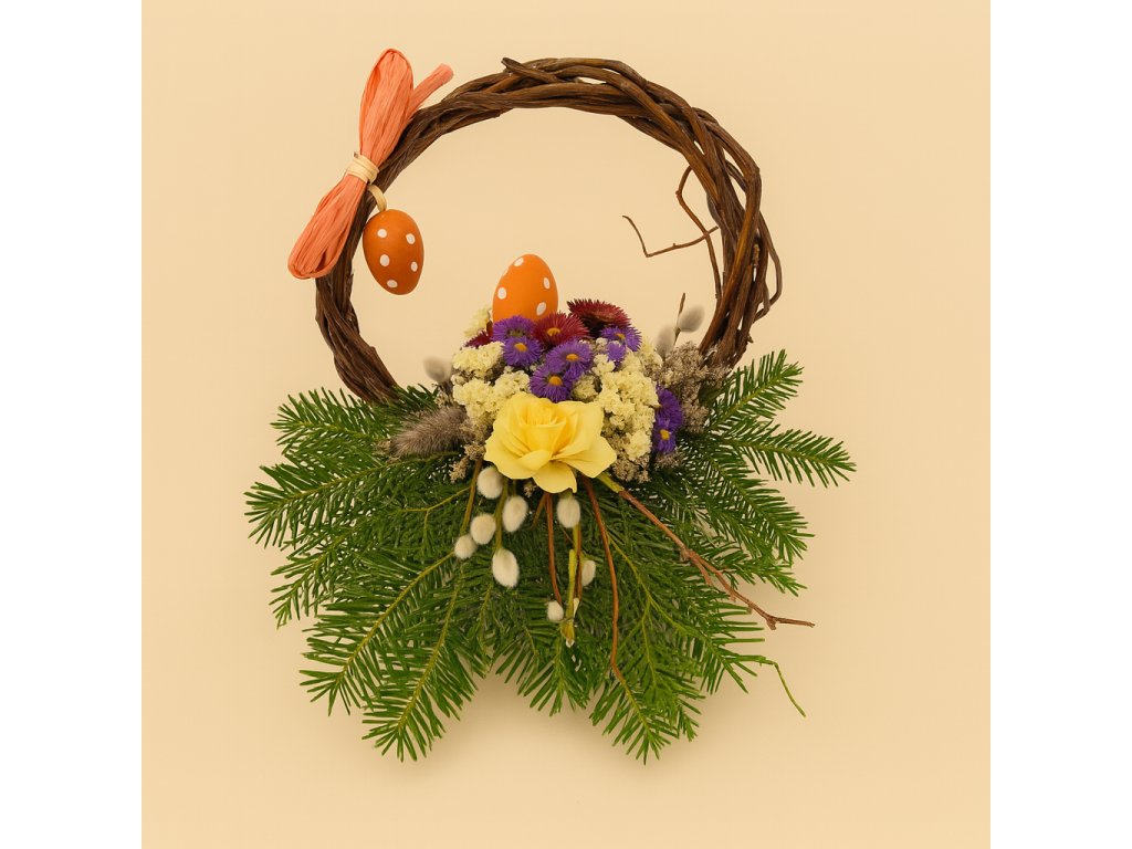 Ke dřevěnému prkénku je připevněno drátové ucho obalené větvičkami vrby. Chvojová placička je velikonočně dozdobena, kytkou ze sušiny (statice, tatarika, slaměnky), mašlí, velikonočním vajíčkem, umělým květem narcisu a kočičkami.