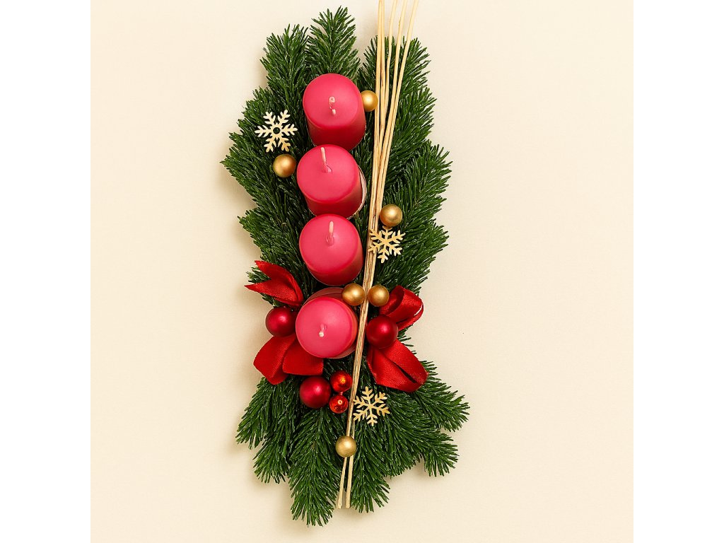 Štola je vyrobena z větviček jedle kavkazské připevněných drátem k bačkoře vyrobené z chvoje, vánočně zdobena + 4 svíčky (různé barvy: červená, bílá, slonová kost, zlatá).