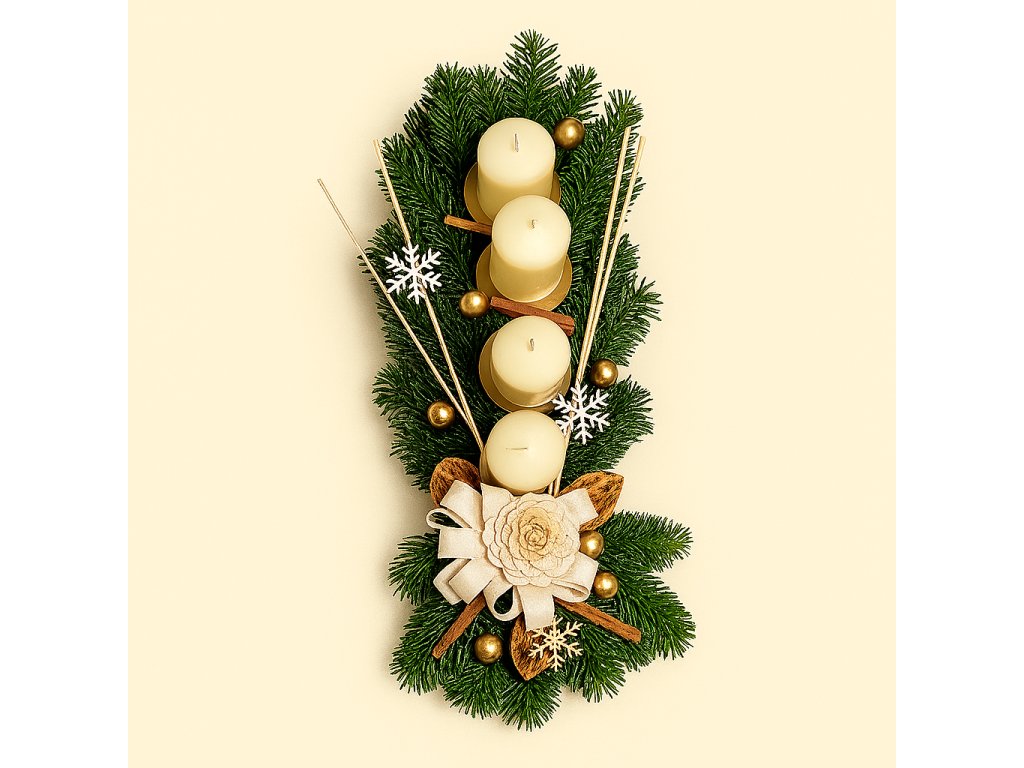 Štola je vyrobena z větviček jedle kavkazské připevněných drátem k bačkoře vyrobené z chvoje, vánočně zdobena + 4 svíčky (různé barvy: červená, bílá, slonová kost, zlatá).