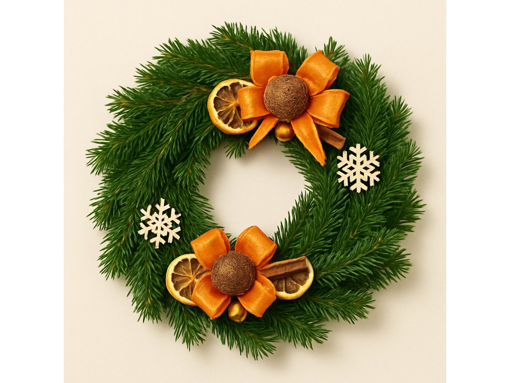 Slámový podklad, ke kterému jsou pomocí drátu připevněny větvičky jedle. Jedná se o větvičky z čerstvé jedle kavkazské z českých plantáží. Věnec je vánočně dozdoben viz. ilustrativní foto (šiškami, mašlí, skořicí, skořápky od ořechů, umělými plody, vánočními ozdobami), zdobení je různé.