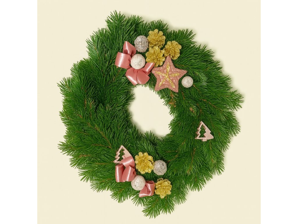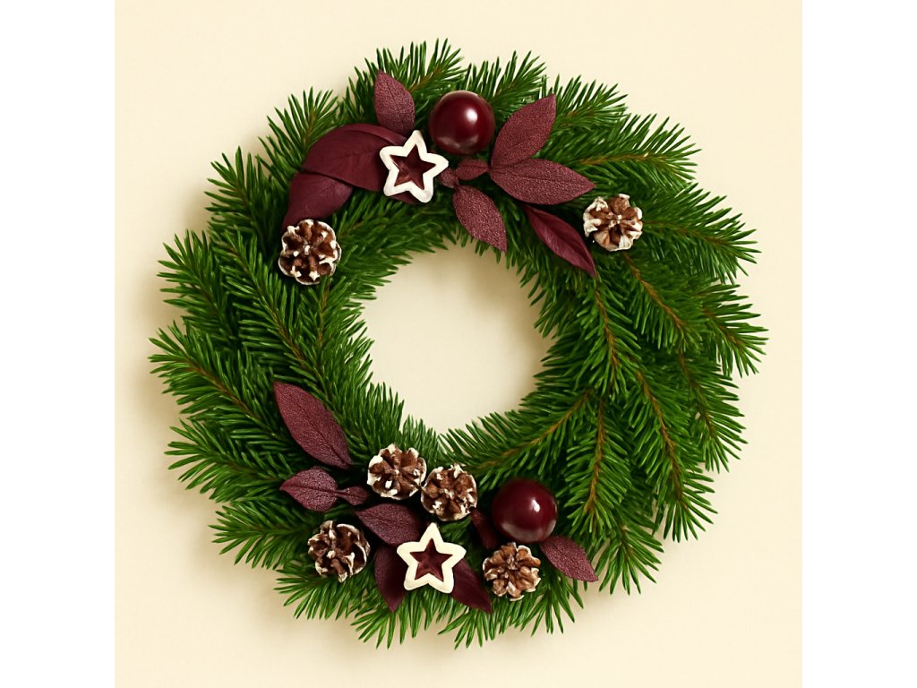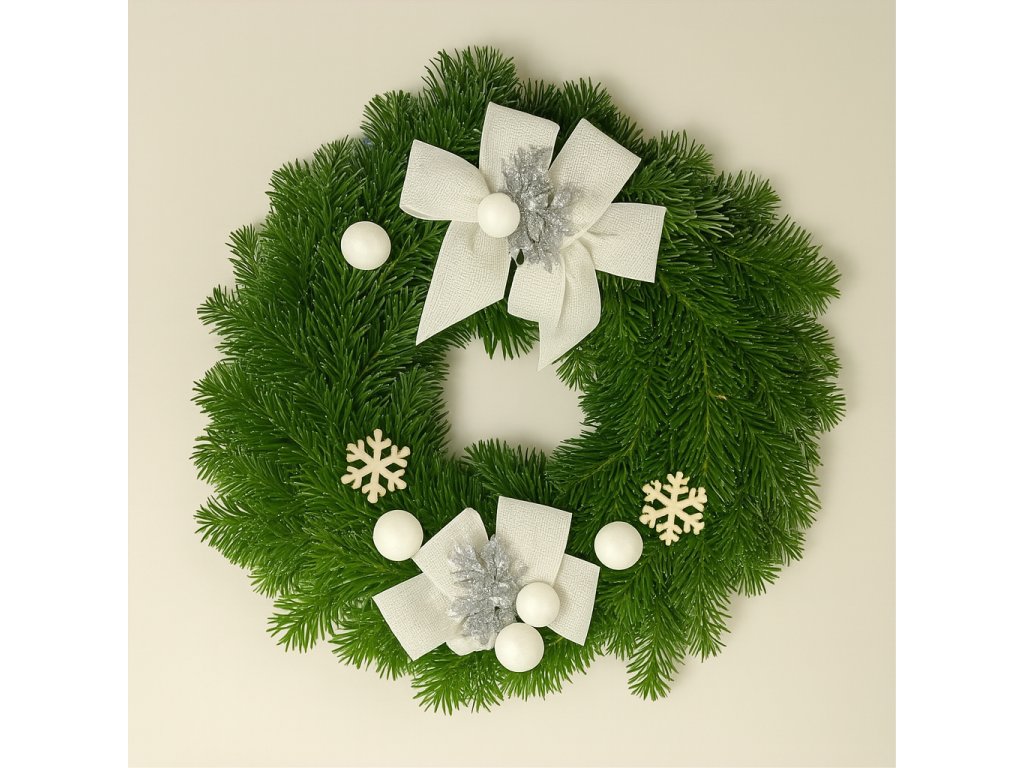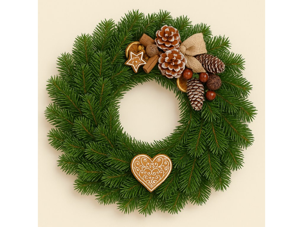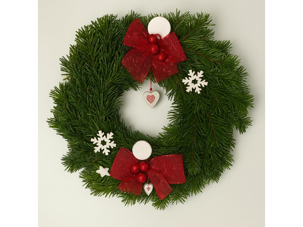 Slámový podklad, ke kterému jsou pomocí drátu připevněny větvičky jedle. Jedná se o větvičky z čerstvé jedle kavkazské z českých plantáží. Věnec je vánočně dozdoben viz. ilustrativní foto (šiškami, mašlí, skořicí, skořápky od ořechů, umělými plody, vánočními ozdobami), zdobení je různé.