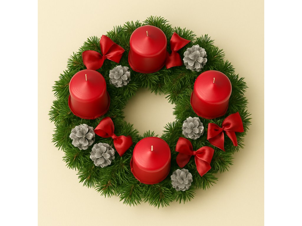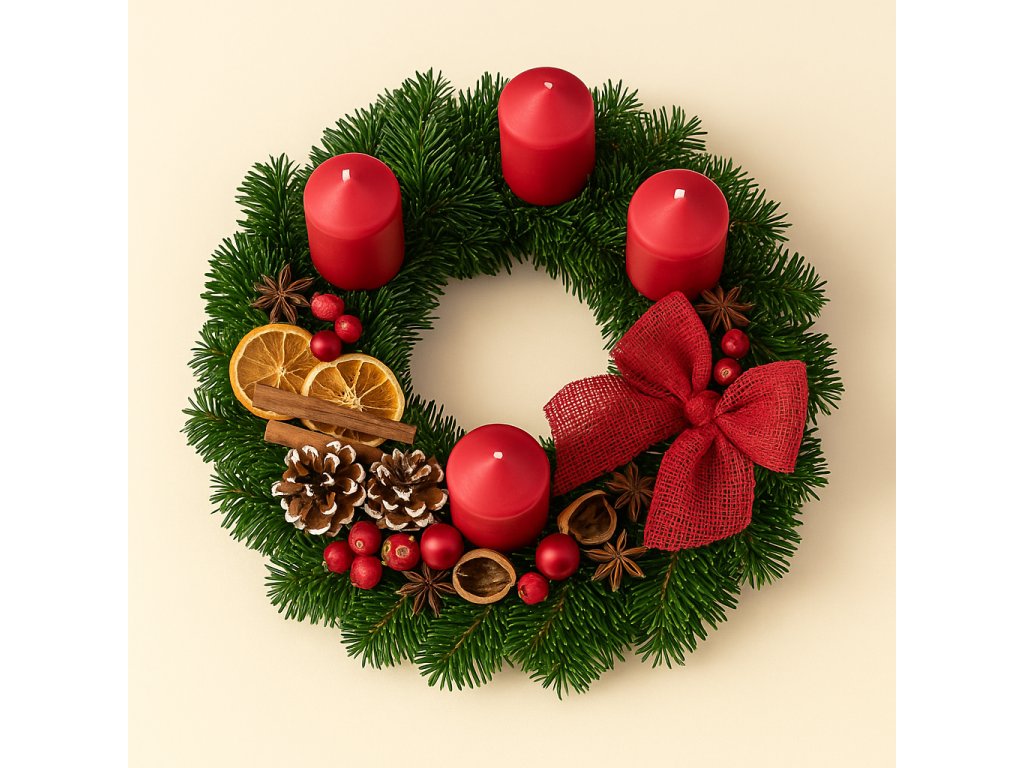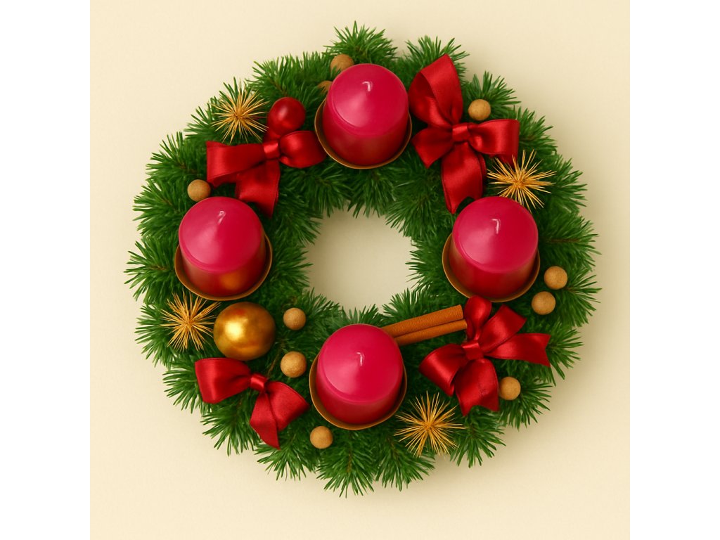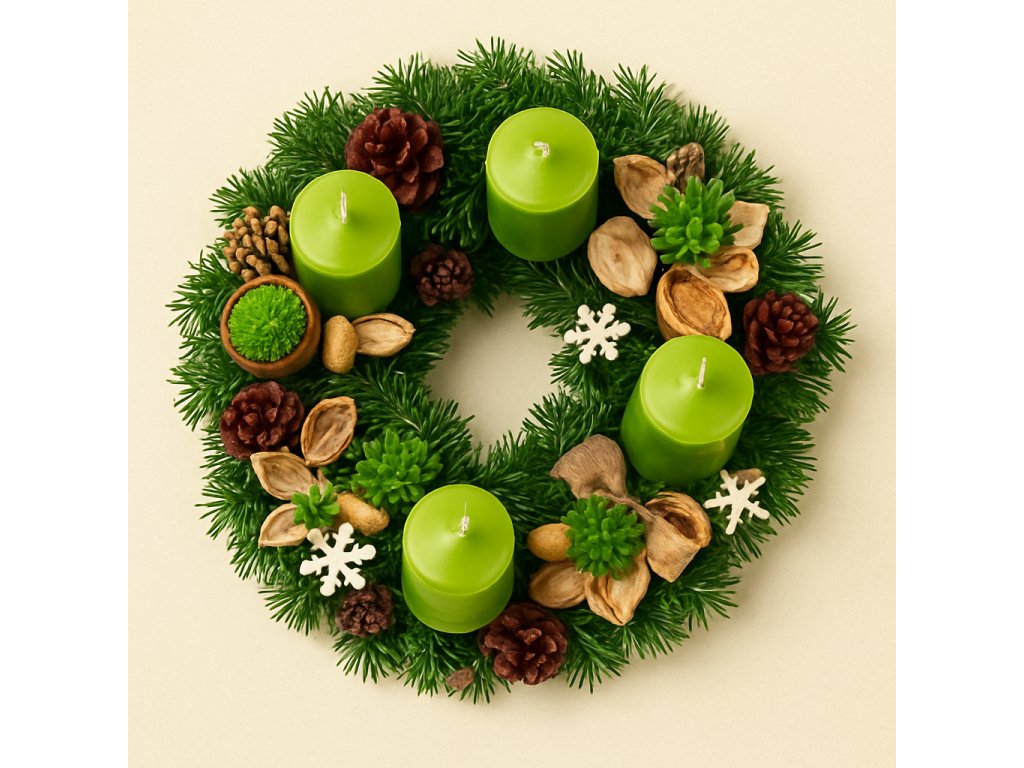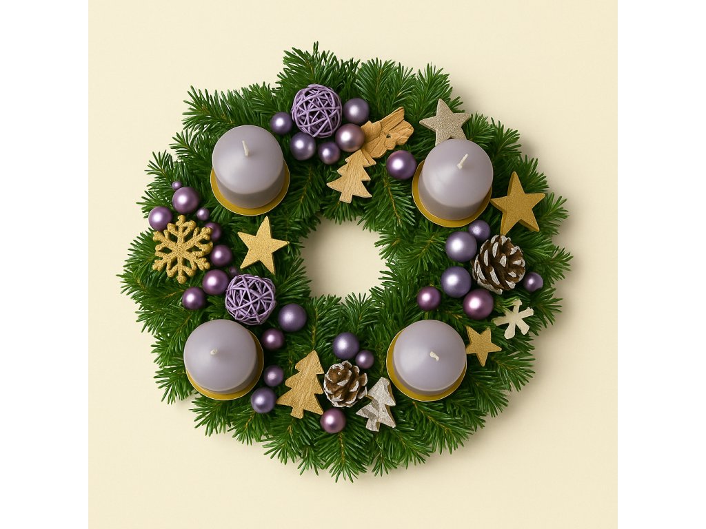 Slámový podklad, ke kterému jsou pomocí drátu připevněny větvičky jedle. Jedná se o větvičky z čerstvé jedle kavkazské z českých plantáží. Věnec je vánočně dozdoben viz. ilustrativní foto; svíčky (různé barvy: červená, fialová, bílá, krémová), věnec je dále dozdoben do barvy svíček mašlí, šiškou, skořicí, dřevěnou dekorací, vánočními ozdobami.