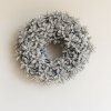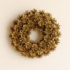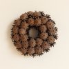 Slámový podklad obalený krepovým papírem. Věnec je vypíchán ze čtyř řad šišek borovice obecné. Přízdoba je vyrobena ze sušených květin - statice sinuata, statice tatarika, slaměnky. Tyto věnce jsou baleny v komínech po 10 ks.